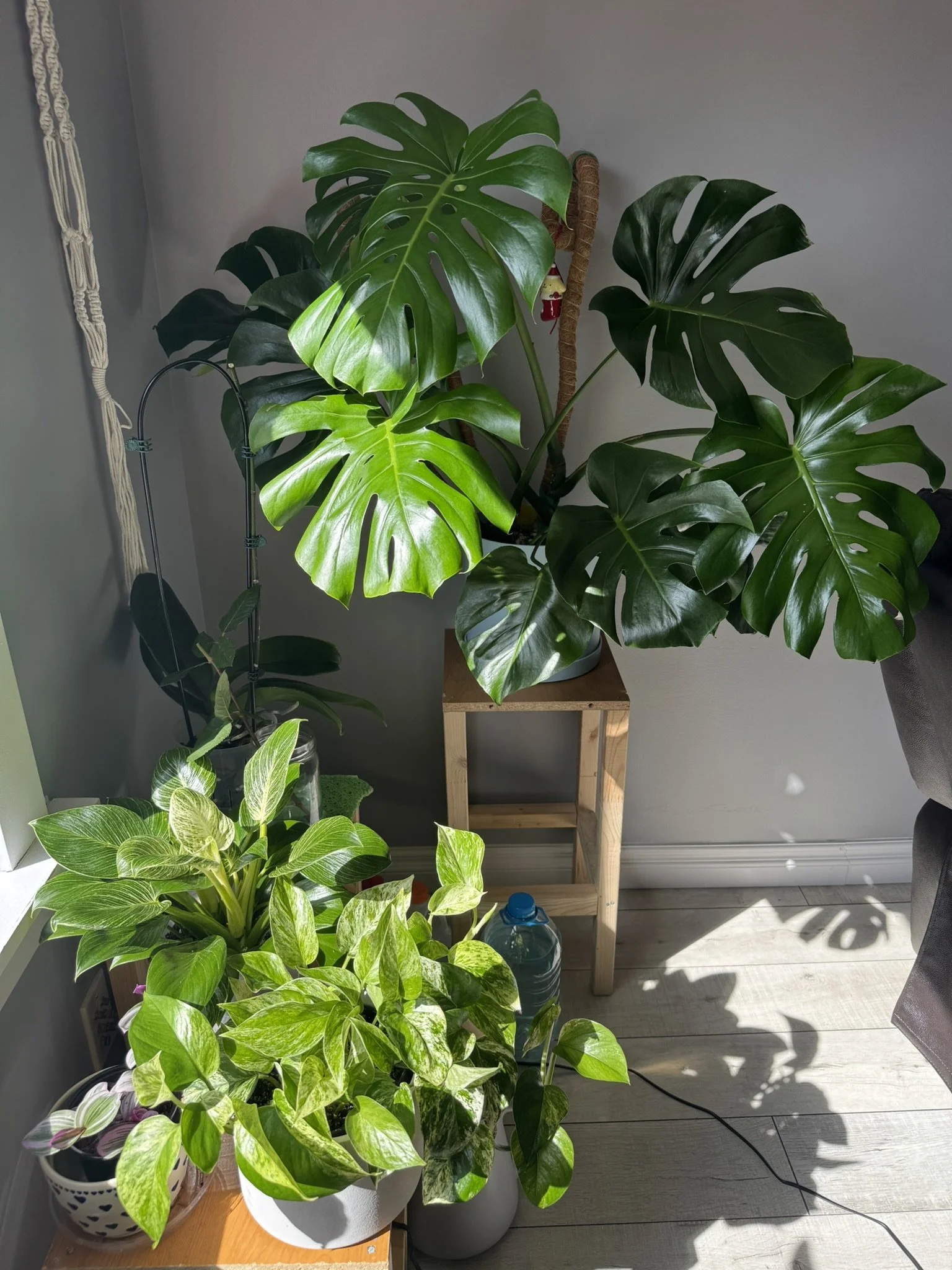 I am currently obsessed with houseplants. I started with various succulents, like moon cactus, jade, tiger aloe, haworthia, and echeverias. I also have tropical plants, such as a philodendron birkin, ZZ plants, an orchid, a monstera, a pothos, a snake plant, a peace lily, a Chinese evergreen, and an inch plant. I have a habit of researching how to care for them and, unfortunately, care for them too hard.